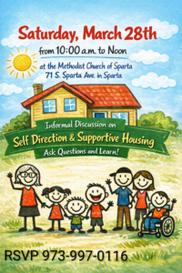 Join Lennon’s House for an informal discussion about Self Direction and Supportive Housing on Saturday March 28, 2026 from 10am until noon at the Methodist Church of Sparta (71 S Sparta Ave). To RSVP please call 973-997-0116.